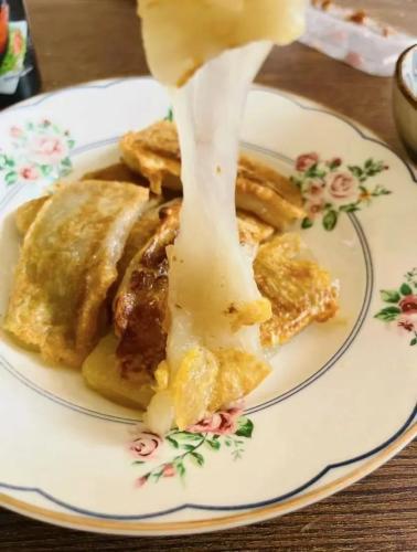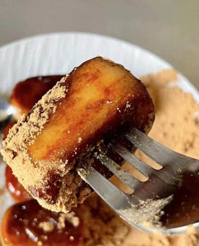 會拉絲的豬油炸年糕,想必一定是不少浙江人的童年回憶。一板豬油熱化,裹上蛋液的年糕入油炸至金黃,香脆的年糕再裹上糖粉,夠黏、夠糯、夠甘、夠香,用來當小零嘴再合適不過。還可以刷上甜麵醬,滋味也很棒~