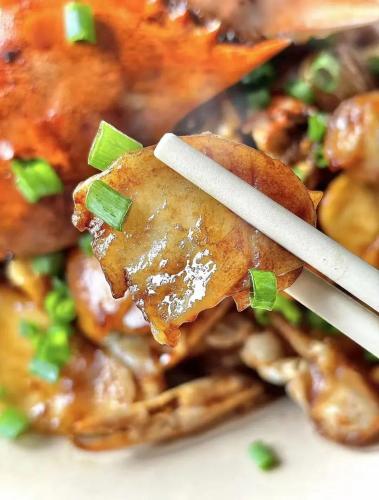 螃蟹和年糕是一對經典組合:肥臾的梭子蟹到了冬季格外飽滿,還帶有肥膏,炒出來的年糕裹滿湯汁,又香又鮮又有嚼勁。誰懂這一口在浙江人心目中的含金量?