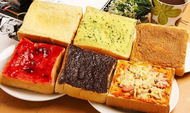 這個是比吐司厚很多的吐司,然後會對切四個角,變成像披薩那樣可以撕開吃。上面可以塗任何你想吃的果醬,或是做成焗烤的鹹厚片吐司唷!小編最愛的是大蒜口味