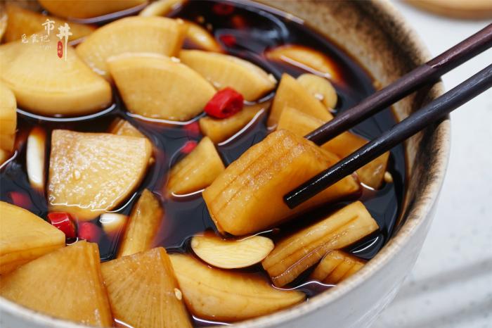 不少朋友覺得吃醃製菜品不好,原因在於醃製時間長,調料味太重,食材的味道和營養也幾乎全部損耗了,而上面這種自制的速成醃蘿蔔方法比較簡單,醃好後當天就能吃,一根蘿蔔醃好後能吃上個兩天左右,吃完後可以再醃一些,每次都吃新鮮的,不僅保留了蘿蔔中的營養,還不用擔心亞硝酸鹽的侵擾。