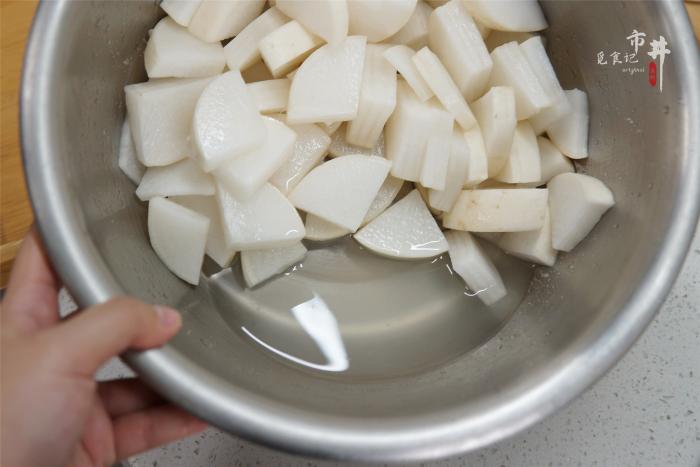 小貼士:醃製蘿蔔時不需要去皮,蘿蔔的外皮營養價值不次於蘿蔔本身,而且帶皮醃製的蘿蔔口感會更爽脆一些,味道更好。