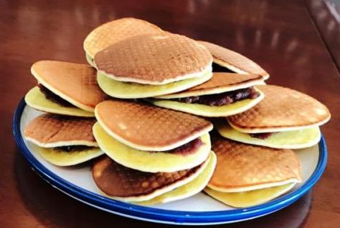 我們再準備適量的豆沙塗抹在烙好的小煎餅上,將兩個小餅合起來就做成了非常美味的銅鑼燒了。