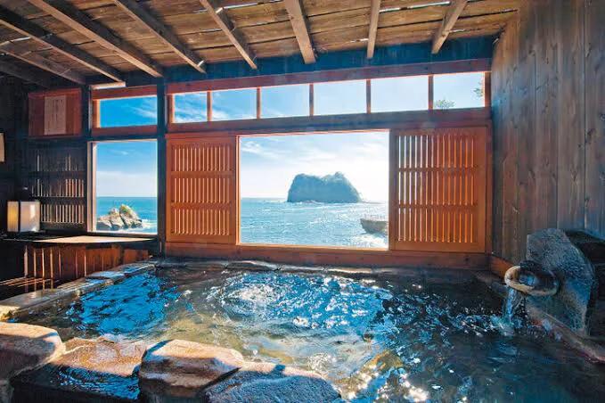 伊豆溫泉位於靜岡縣,以其美麗的海岸線和豐富的溫泉資源而著稱。這裡的溫泉旅館多為面朝大海的設計,遊客可以在泡湯的同時欣賞到壯麗的海景。伊豆的溫泉水質極佳,適合放鬆身心。這裡還有豐富的海鮮美食,如新鮮的刺身和壽司,絕對不容錯過。