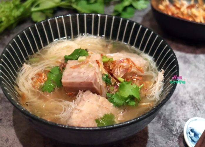 - 米粉處理:米粉泡軟瀝乾就好,千萬別煮太久。最後下鍋,滾一下就可以關火,靠餘溫讓它吸湯汁。這樣米粉才不會爛糊糊。