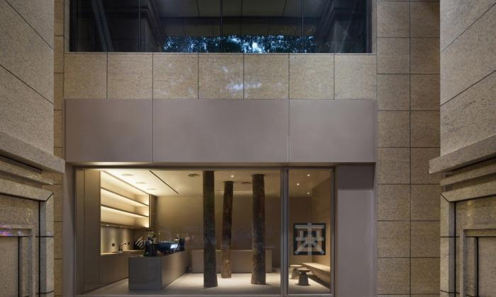 用逆向的商業思維解決展示關係,與其他相比我們更希望設計是能融合在城市環境中的,而不是讓城市更喧鬧,玻璃門中使用店名來回二字,在室外方向運用來,寓意迎接客人,室內空間中運用回字,客人離開時寓意再次回家。