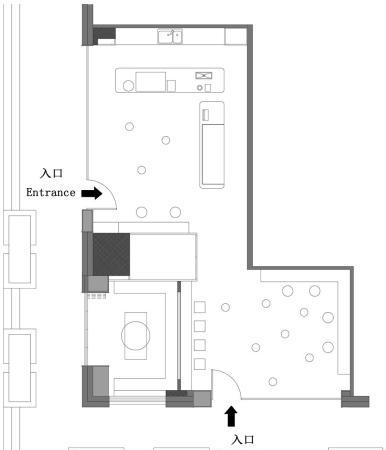Compared with others, we hope that the desi gn can be integrated into the urban environment rather than make the city more noisy. The glass doors on both sides use the name of the store “LAIHUI”, and the word “LAI” is used outside of the door to symbolize the welcoming of the guests. The word “HUI” is used inside of the door, represents guests will return home soon when leaving.