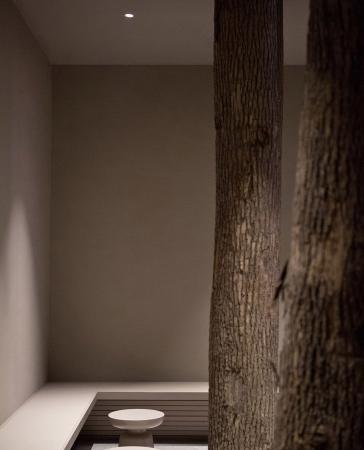 Linked with outdoor glass for interior to create a better visual experience, the trunk of three different location arrangement in space, as a dividing line, the space disturb forming richer multi-dimensional spatial relationships, it is not only the partition of the space, also is the visual center of the space, clean aluminum plate and the wallpaper, the trunk with time rings more outstanding.