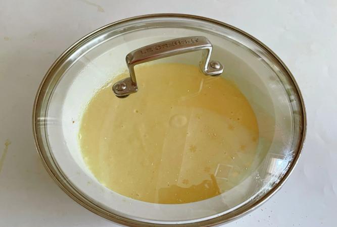 步驟二:將麵糊攪拌均勻後,用保鮮膜或者鍋蓋蓋住,靜置發酵至兩倍大小時即可。