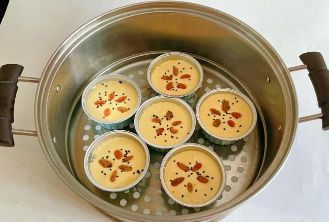 步驟四:將小碗挨個拿到蒸籠裡,端上蒸鍋,先再次醒發10分鐘後,開大火,上汽後再蒸20分鐘關火,關火後再燜3分鐘後即可出鍋。